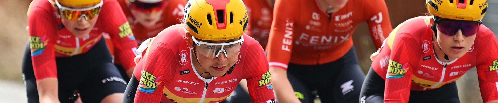 Anouska koerst in het shirt van Uno-X Mobilty. Daarnaast wordt zij nog ondersteunt door enkele persoonlijke sponsoren.
